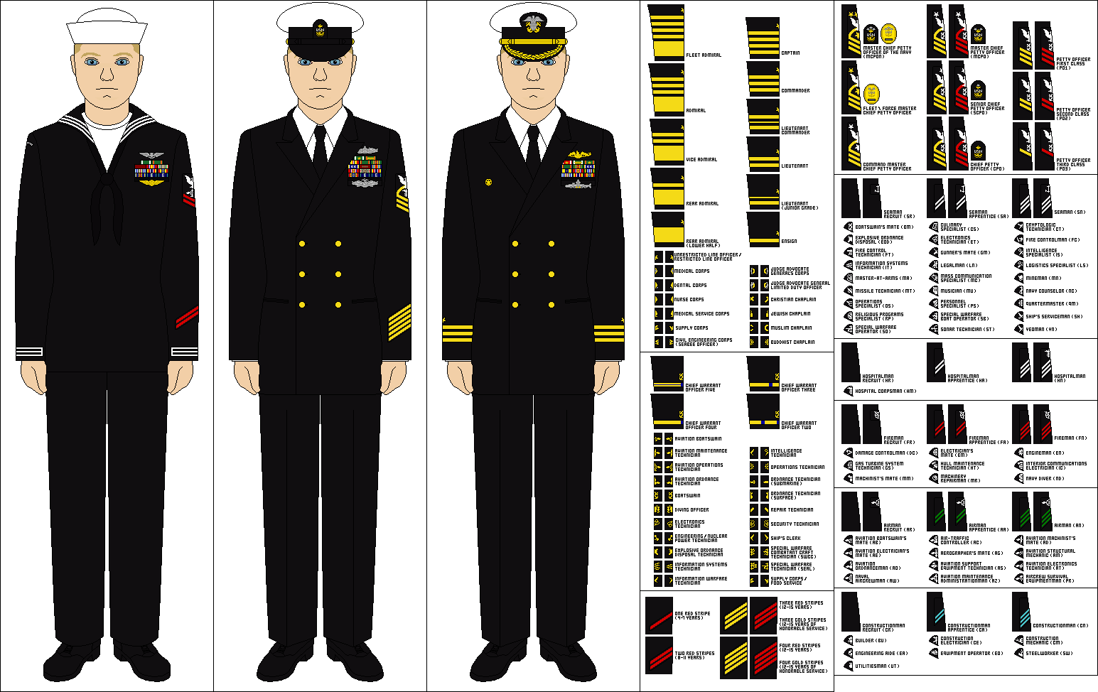 Wear up to five miniature medals in a row with no overlap. The official website for MyNavy HR Navy Personnel Command. This same uniform becomes the Enlisted Full Dress Blue Uniform by replacing the ribbons worn on the left breast with their corresponding medals.